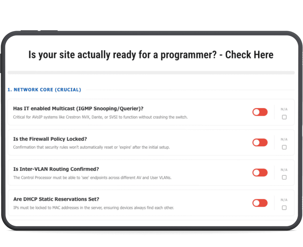 Don't waste $1,500 on a day-rate for a programmer to sit and wait for a network password. Use the same 12-point checklist our Senior Engineers use to guarantee a "One-Trip" commissioning.